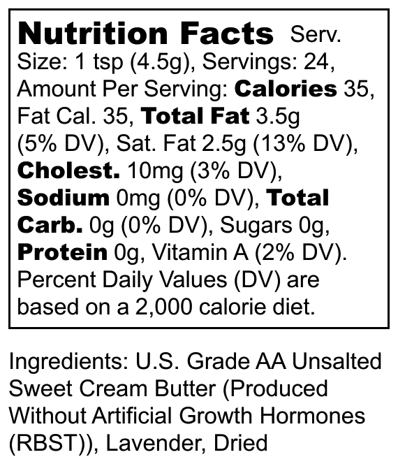 Lavender Ghee is made with pure, high-quality US Grade AA fresh sweet cream butter infused with fragrant lavender buds. This harmonious blend combines the rich, nutty notes of ghee with the delicate floral aroma of lavender, creating a culinary experience that's both soothing and delightful.